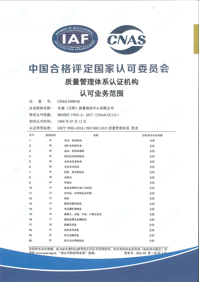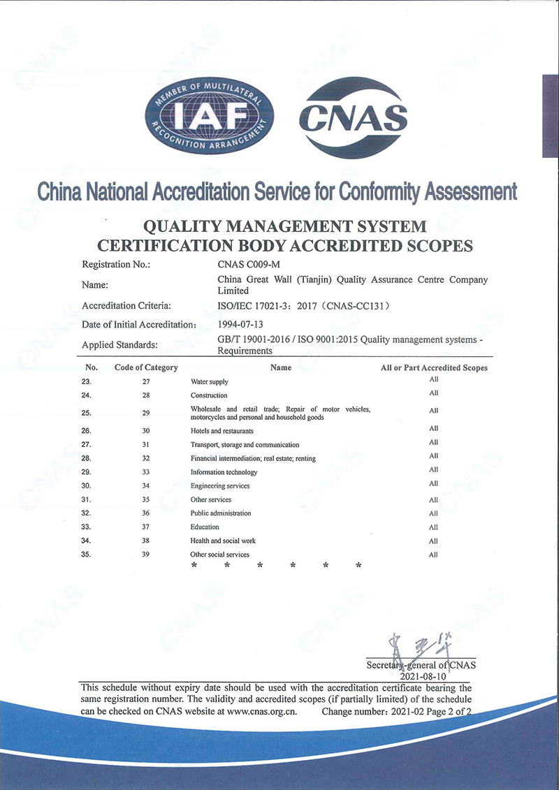 能源管理體系認(rèn)證機(jī)構(gòu)認(rèn)可業(yè)務(wù)范圍中文