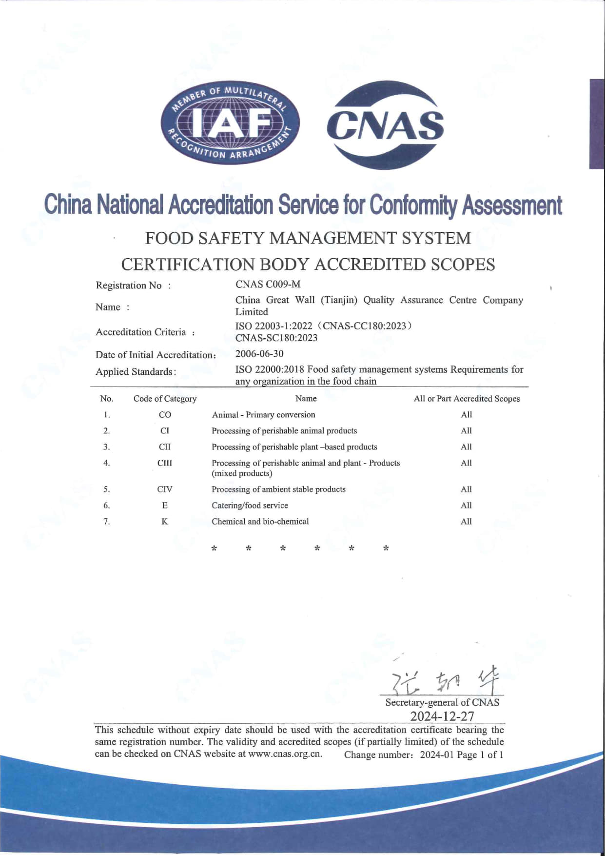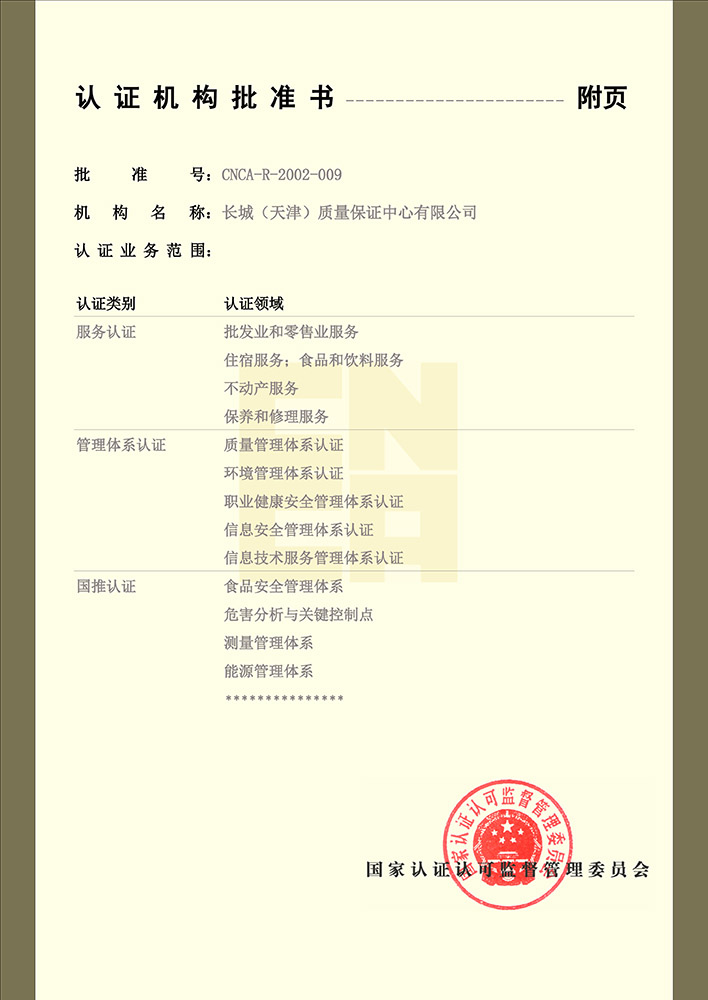 長城(天津)質(zhì)量保證中心有限公司(簡稱“長城中心”),出資人為天津國興資本運(yùn)營有限公司,是國有法人獨(dú)資企業(yè)。長城中心是經(jīng)國家認(rèn)證認(rèn)可監(jiān)督管理委員會批準(zhǔn)認(rèn)證資格、經(jīng)中國合格評定國家認(rèn)可委員會批準(zhǔn)CNAS認(rèn)可資格的具有獨(dú)立法人資格的第三方認(rèn)證機(jī)構(gòu),是中國認(rèn)證認(rèn)可協(xié)會的常務(wù)理事單位。 長城中心1993年首批獲得國家認(rèn)可并批準(zhǔn)注冊,具備國際認(rèn)證認(rèn)可論壇IAF國際互認(rèn)資格,現(xiàn)已發(fā)展為遍涉全國認(rèn)證業(yè)務(wù)的大型綜合性認(rèn)證機(jī)構(gòu)之一。 長城中心具有質(zhì)量管理體系、環(huán)境管理體系、職業(yè)健康安全管理體系、食品安全管理體系、危害分析 [查看詳情]